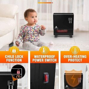 - 【BUILT TO BE SAFE】: This infrared space heater is equipped with ETL certification, child lock function, and overheat protection feature to keep you and your family safe. A leakage protection plug and a waterproof case on the power switch for your safety in the bathroom.