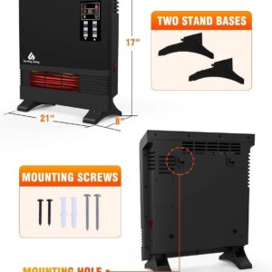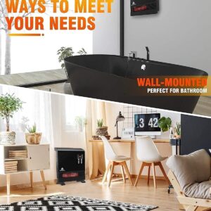 - 【WALL MOUNTED OR STANDING】:This electric space heater has wall mounting accessories can be used for hung on the wall and you won’t waste any floor space, highly recommended for bathroom, garage and basement. It also with standing bases for -standing, it is portable and convenient to move around. Both of them are easy to install.