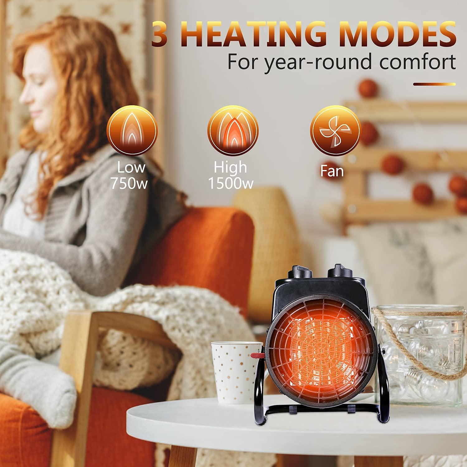 - 【3 MODES ELECTRIC HEATER】: This electric space heater features 3 different settings: fan only (no heat), low heat (1000W) and high heat (1500W), the separate thermostat is used to adjust temperature.