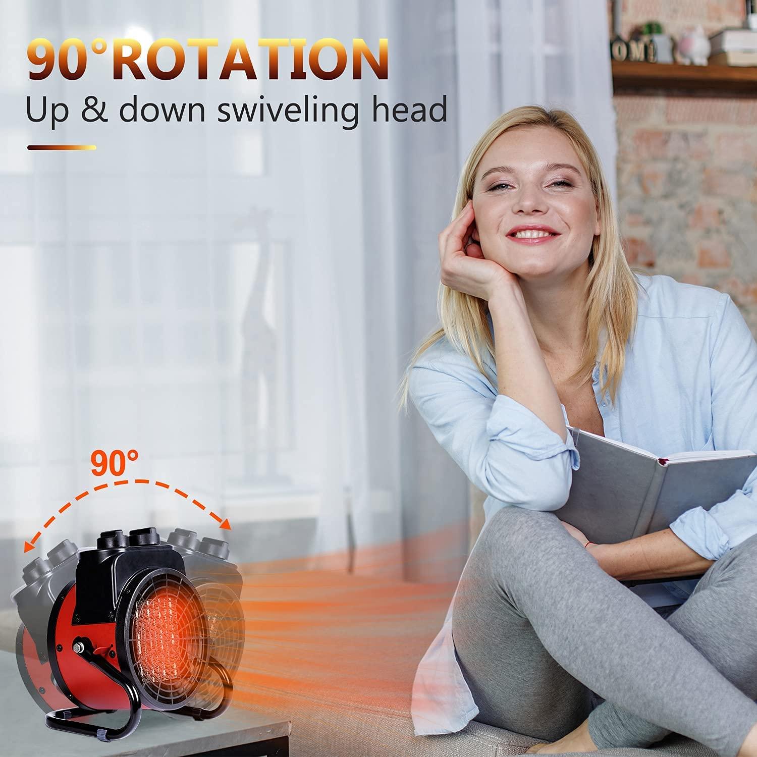- 【90° TILT ROTATION】: This electric portable heater can provide a wider heating range with a 90° tilt rotation. Convenient to take it any place with a 6 ft long power cord and steady non-slip metal standing.