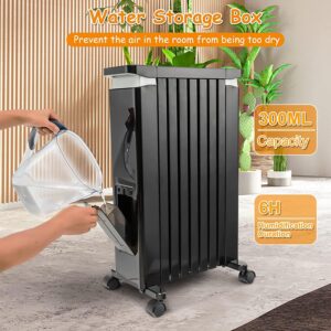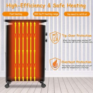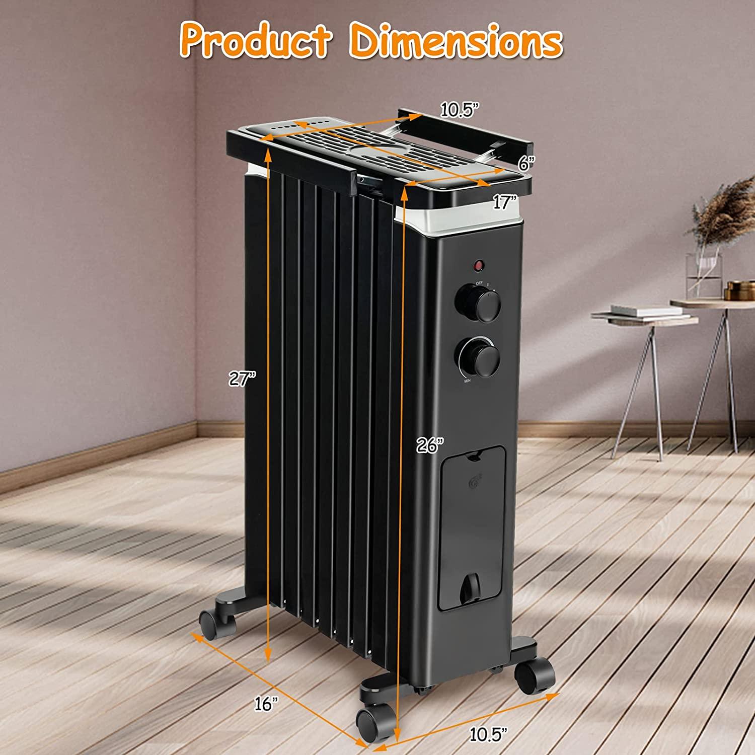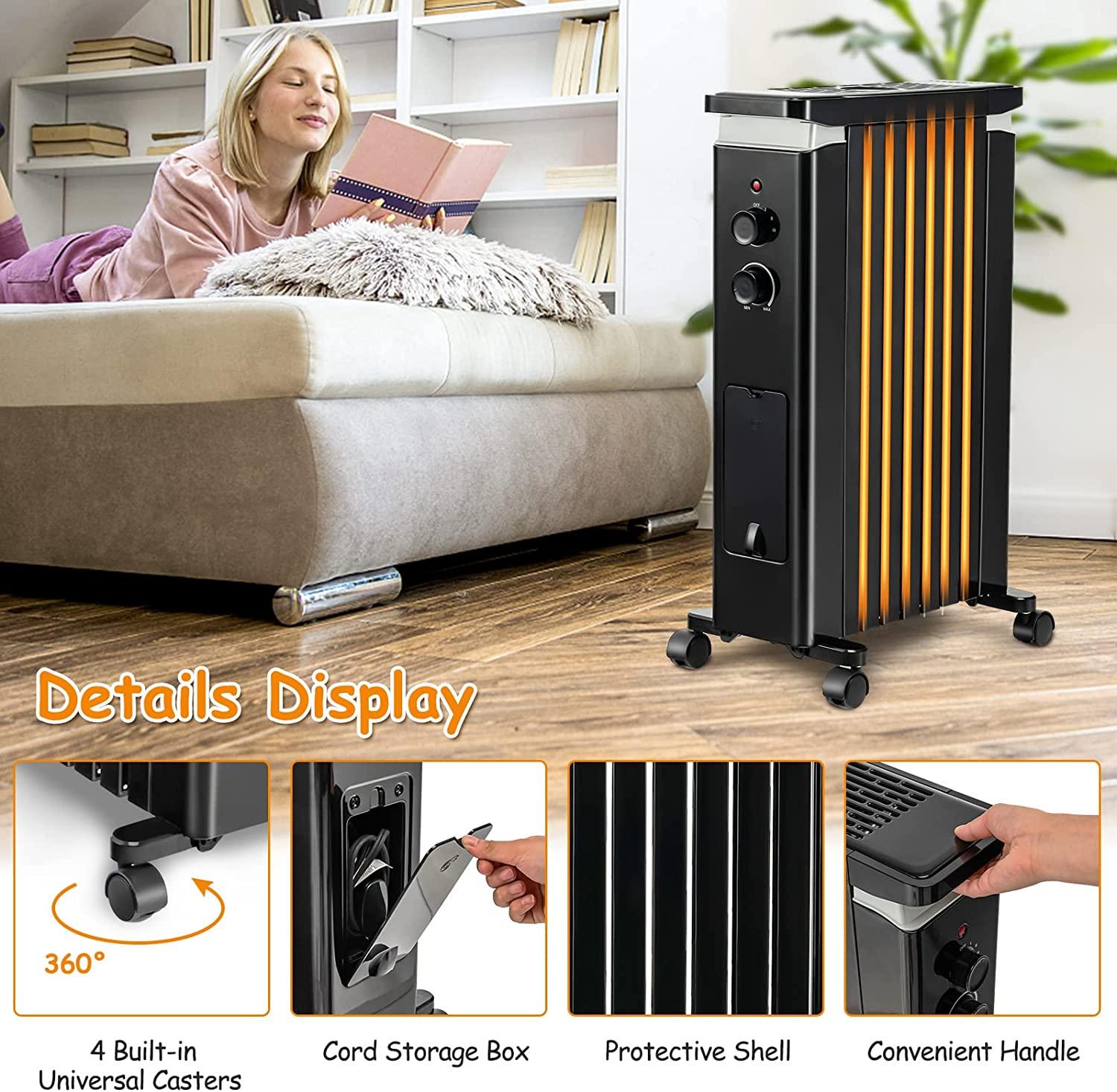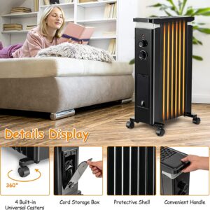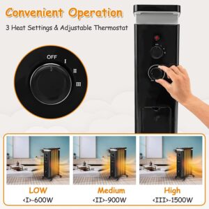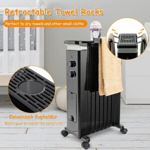 Tangkula 1500W Electric Space Heater, Oil Filled Radiator Heater with 3 Heat Settings & Adjustable Thermostat, Overheat & Tip-Over Protection, Radiant Heater with Hanging Rack for Indoor Use (Black)