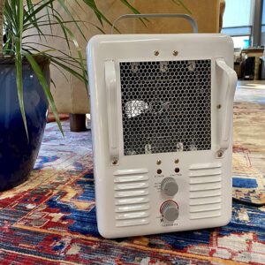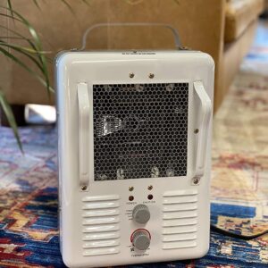 - Fan Forced Heater: milk house style heating equipment features temperature control thermostat and comes with a triple safety system: tip-over switch. An automatic reset type limit control comes with thermal cut off device. Other features are fast startup and quiet operation in an attractive design