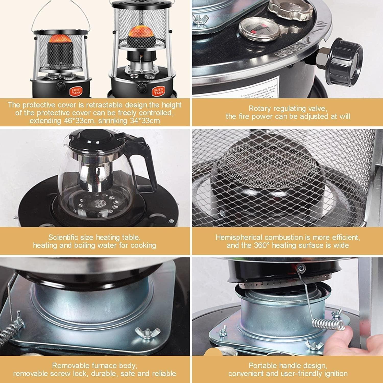 - ★Energy Saving and Safety: Portable kerosene heater without electricity. Don’t worry about power outages due to hurricanes, heavy rain and snow, and use it anytime. The kerosene heater has the characteristics of quietness, no peculiar smell, no oil leakage, and durability.