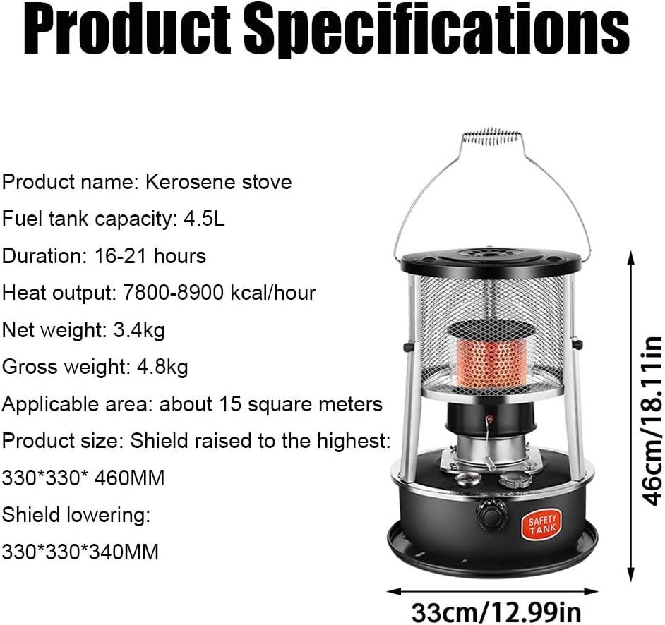 - ★High Calorific Value: Portable kerosene heater stove maximum calorific value is 7800-8900 kcal/hour, and the fuel consumption per hour is 0.25L/hr. It can quickly heat up a room of about 20 to 30 square meters.