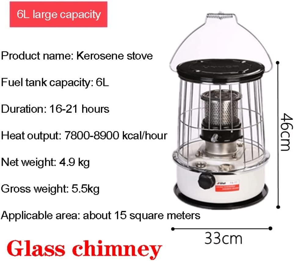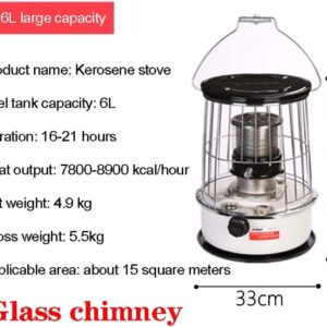 - 【More efficient kerosene heating】he combustion chimney is made of Glass, so that the kerosene can be fully burned, and the heating is faster and more efficient.Fuel tank capacity 6L.