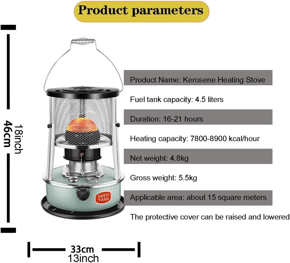 - ♨ More Efficient Heating: High calorific value and large heating range,The combustion chimney of the non electric heaters is made of special metal to ensure that the kerosene is fully burned, and the heating is faster and more efficient. (No peculiar smell after full combustion)