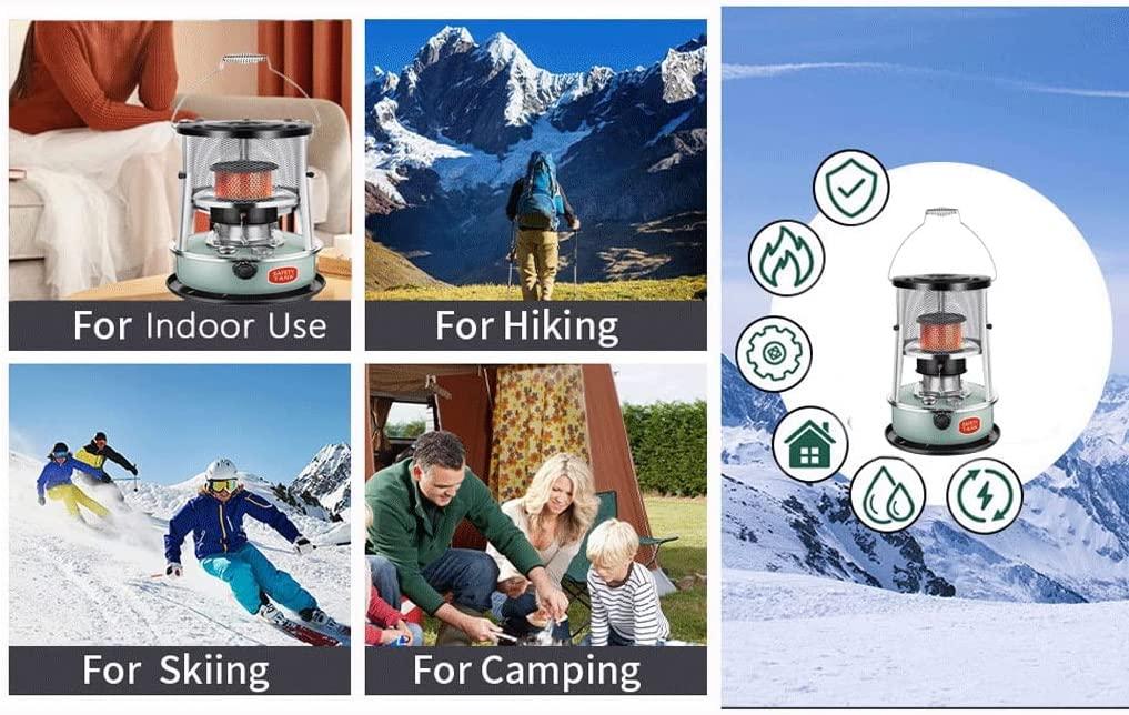 - Multiple Uses: Kerosene heaters can be used indoors, camping, gardens, restaurants, tents, balconies, and the portable design allows you to use them in camping, ice fishing or picnics, emergency heat sources。
