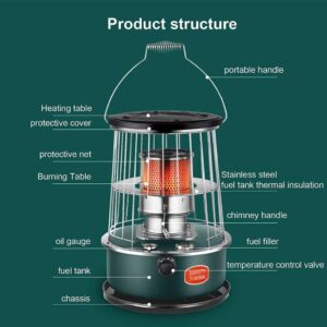 - ★Energy Saving and Safety: Portable kerosene heater without electricity. Don’t worry about power outages due to hurricanes, heavy rain and snow, and use it anytime. The kerosene heater has the characteristics of quietness, no peculiar smell, no oil leakage, and durability.