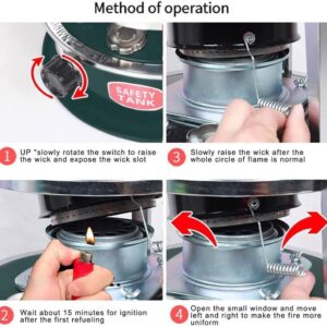 - ★Efficient Kerosene Heater Stove: The combustion chimney of the non electric heaters is made of special metal to ensure that the kerosene is fully burned, and the heating is faster and more efficient. (No peculiar smell after full combustion).
