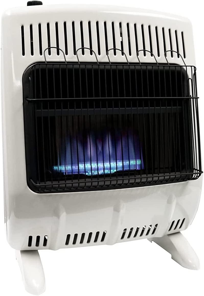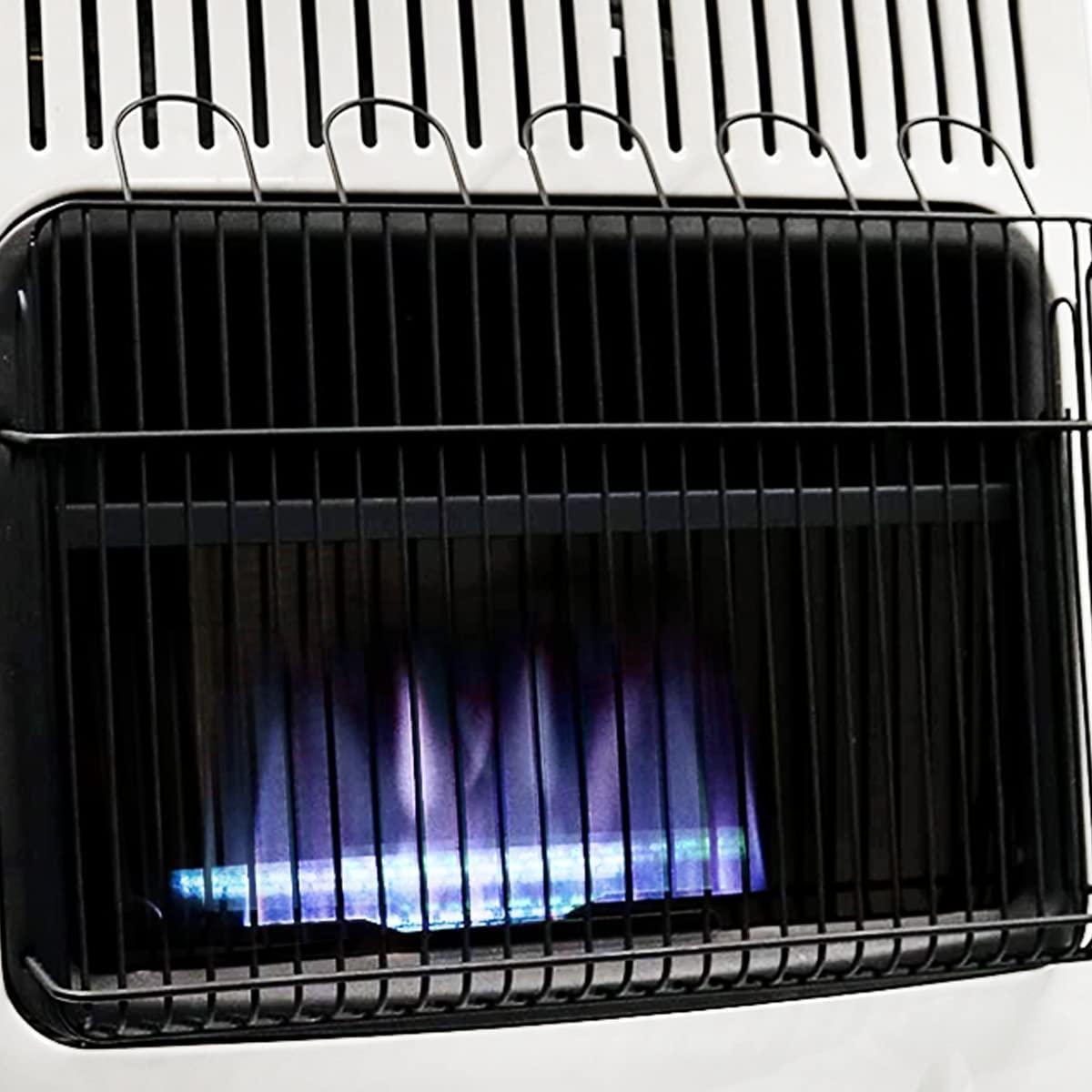 - Liquid propane ready – blue flame – 10,000 BTU/hr. – heats up to 250 square feet