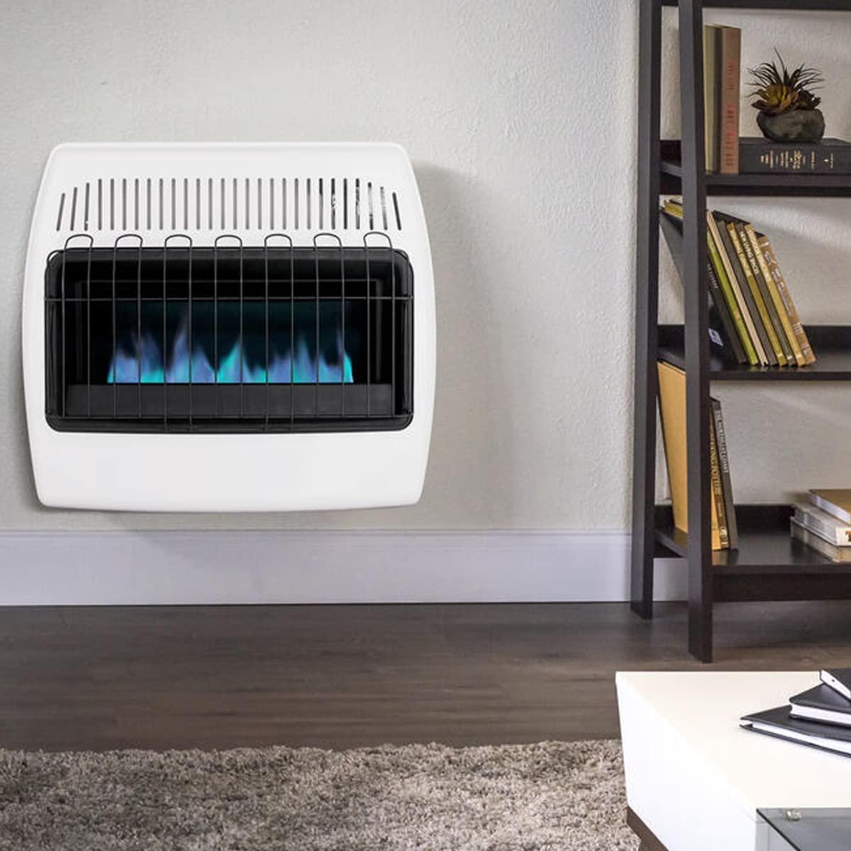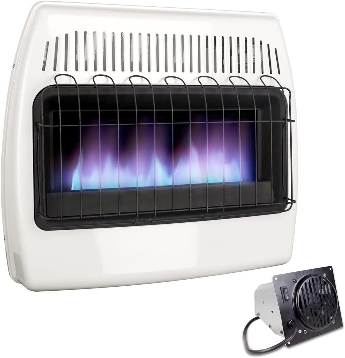 UTY 30,000 BTU Natural Gas / Propane Wall Heater for Indoor Use – Dual Fuel, with Fan Blower, white, 28 x 11 x 24