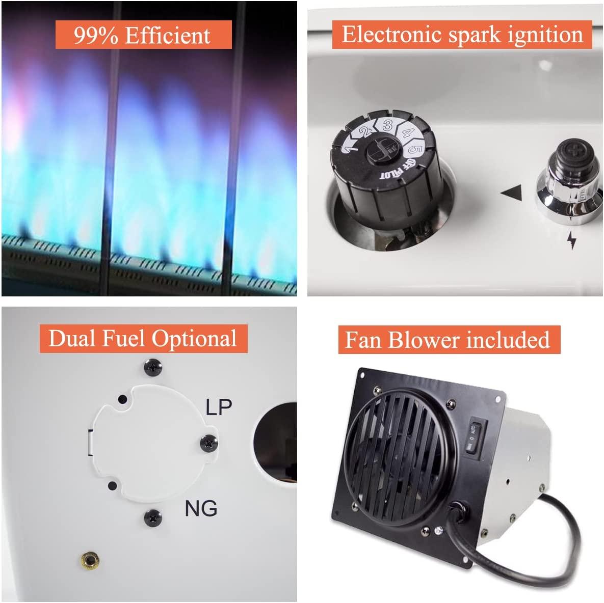 - With fan Blower, Improve whole room heating with this 2-in-1 mode fan, Fan automatically operates when the heater gets above 113 degrees Fahrenheit to ensure it’s blowing ONLY warm/hot air.