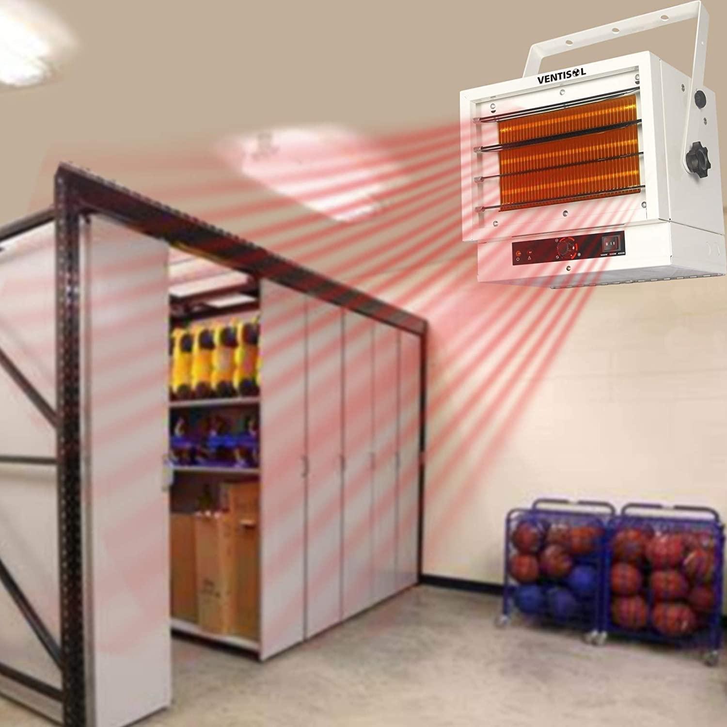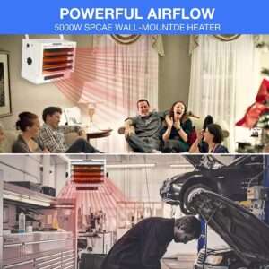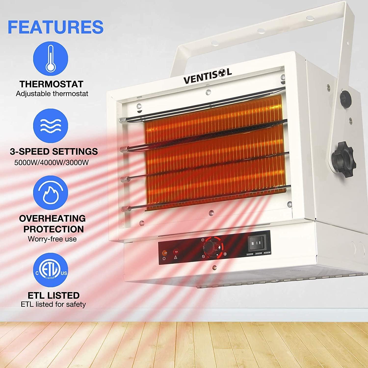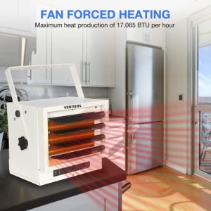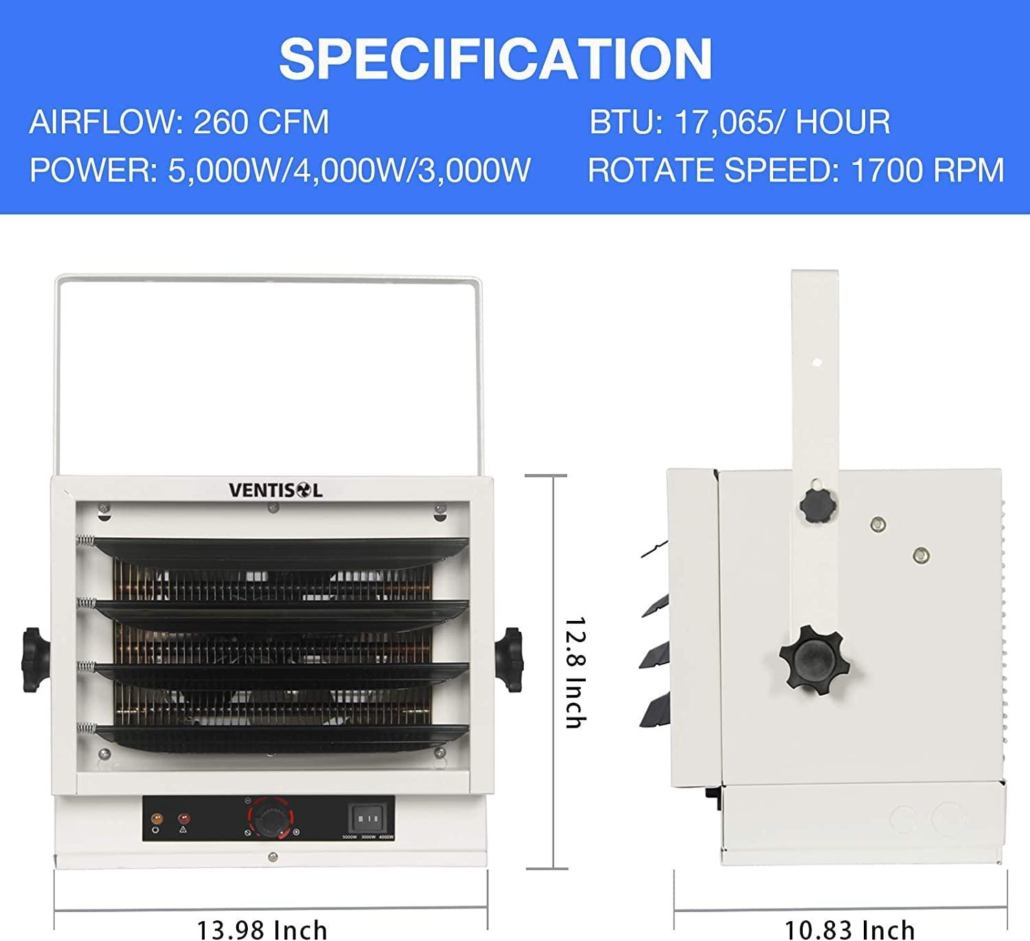 VENTISOL 5000W Fan Forced Ceiling Mounted Heater Wtih Thermostat 240V Hard-wired Dual Knob Electric Heating for Garage,Warehouse,Workshop,Home