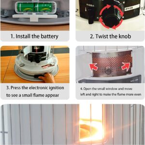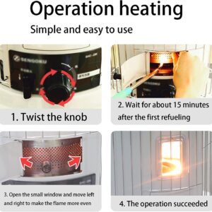 - MORE EFFICIENT KETROLEUM HEATING: The combustion chimney of the indoor portable kerosene stove without electricity is made of special metal so that the kerosene is burned completely and the heating is faster and more efficient
