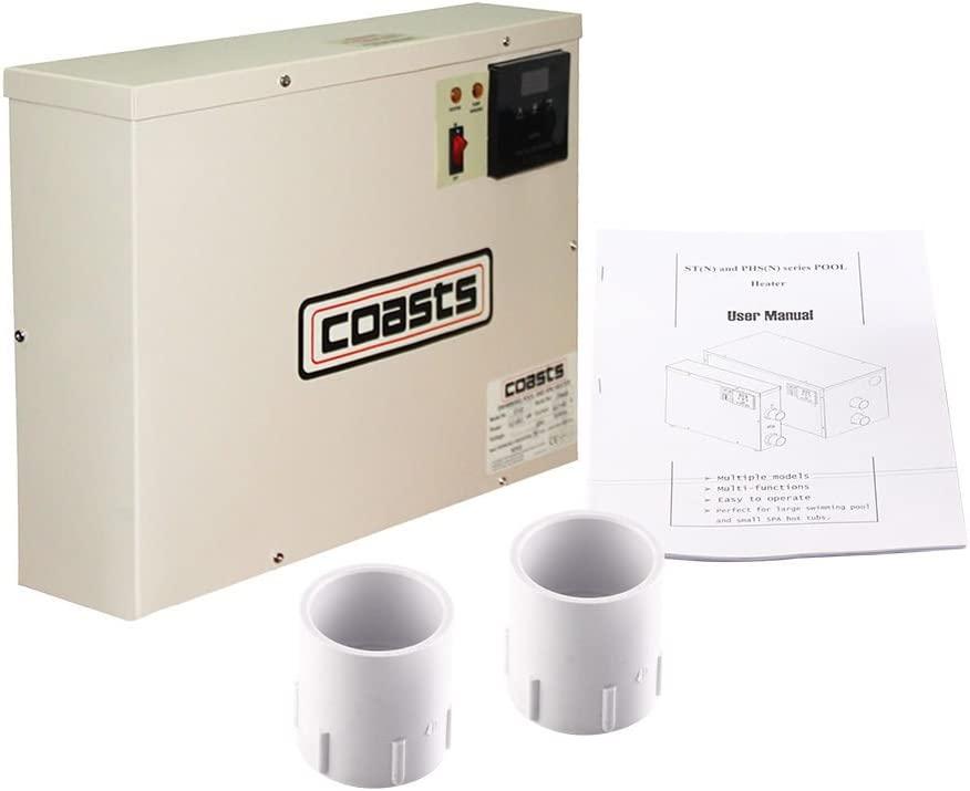- ST series pool heaters are special used for small pool less than 1320 gallon of water/5CBM, massage pool and hot spring to heat and keep warm; Meanwhile, can be a assistant for heat pump in heating.This product adopts latest constant temperature controller- -temperature sensor replaces traditional magnetic flow switch,it improves greatly of trouble in working time, adaptability of water environment and stability.