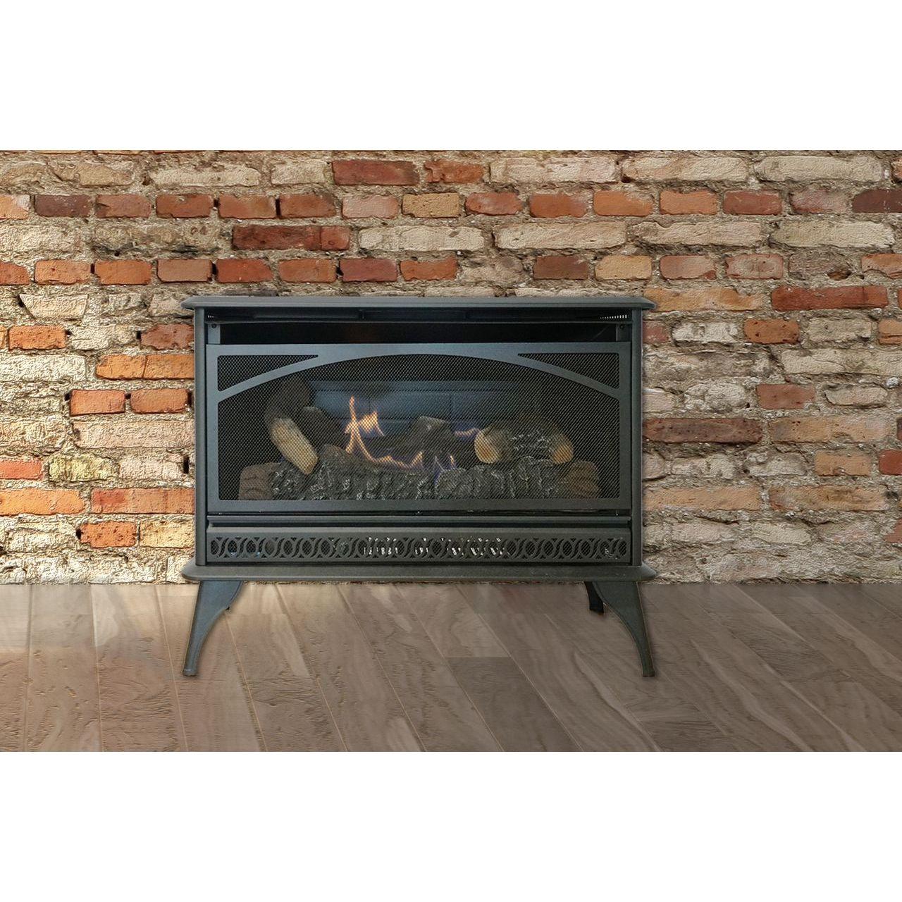 The HearthRite Vent-Free Stove features a dual burner, decorative arch screen and five ceramic fiber logs. Available in natural gas and propane, both units feature state-of-the-art Oxygen Depletion Sensor technology to ensure safe, reliable performance. Specifications: Fuel Source: Propane. Maximum BTU Output: 25,000. Maximum Heating Area: 1,000 square feet. Item Dimensions: 32.09″ W x 22.24″ H x 16.34″ D. Item Weight: 46.30 lbs.
