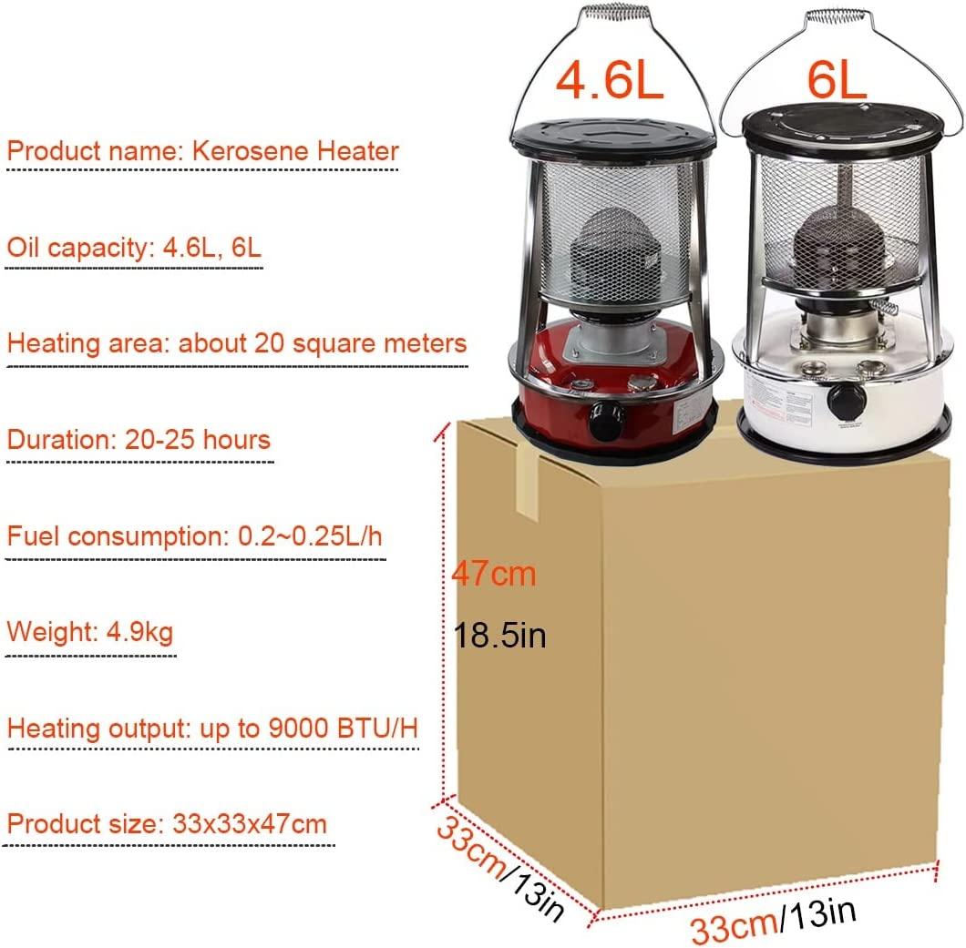 Without Electricity Camping Heating Stove Kerosene Heater for Indoor Outdoor 2 in 1 Tent Oil Heaters Patio Emergency Heater, Stainless Steel (Size : 6L/White)