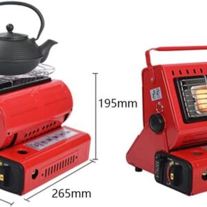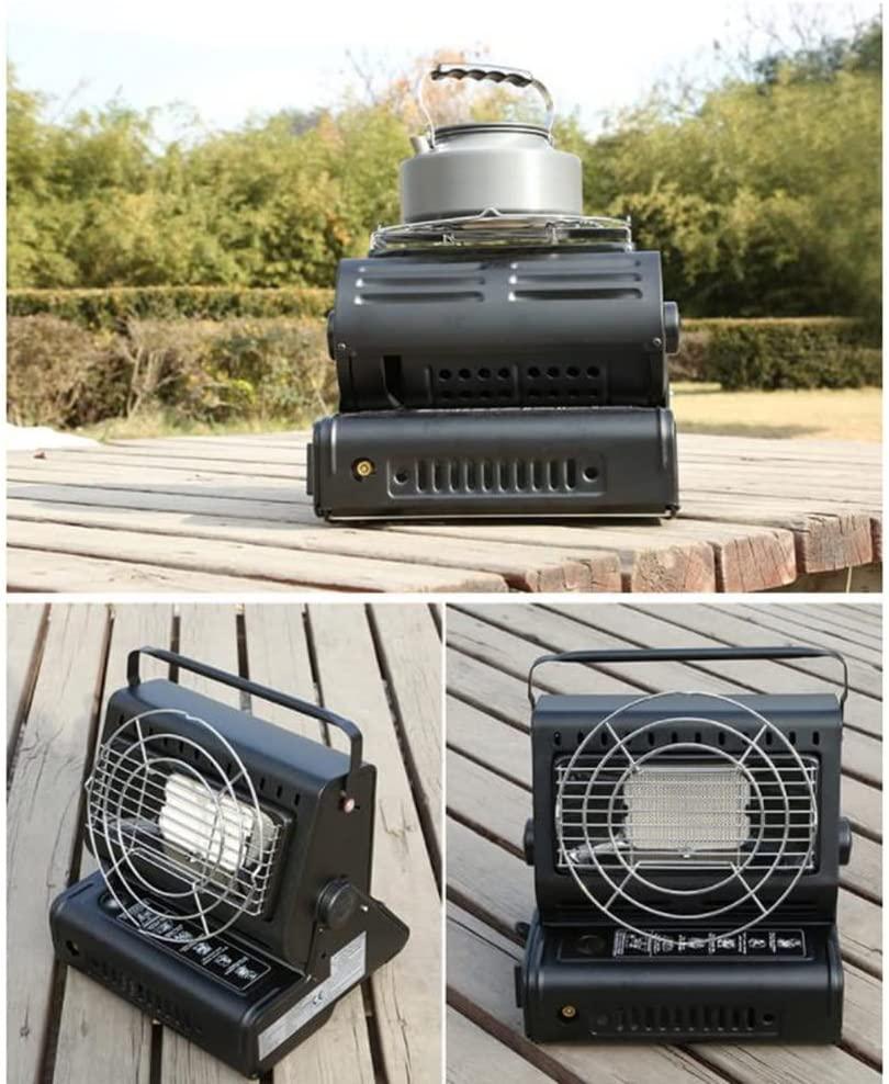WJWA Outdoor Tent Gas Heater 1.3kW, 2 in 1 Camping Caravans Heater & Stove with Handle, Portable Butane Heater, 24.5 X 19.5 X 26.5 cm (Color : Black)