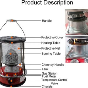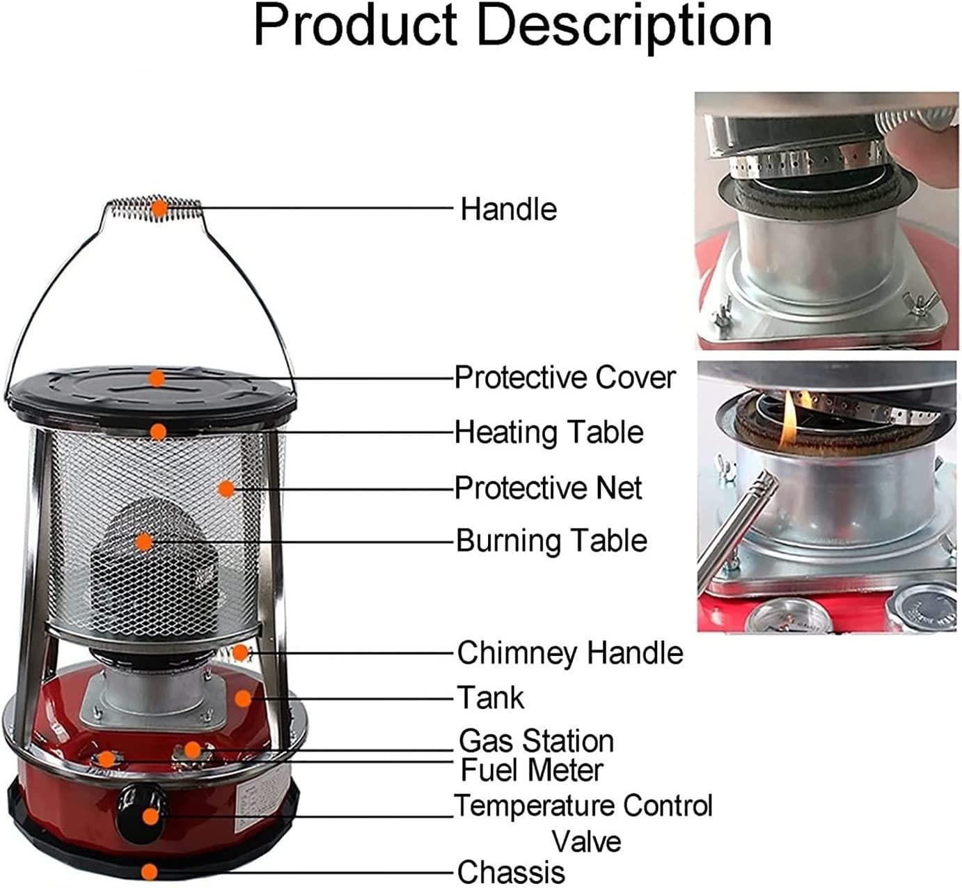 - ☀Specially designed kerosene heater: made of stainless steel, the removable body is easy to clean and durable. Rotating adjustment valve to adjust the fire power as needed; no noise, no glare