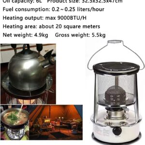 - ☀Convenient and practical kerosene stove: kerosene stove has a handle at the top, easy to carry. Comes with an oil gauge, you can check the remaining oil amount at any time; Indoor and outdoor can be used