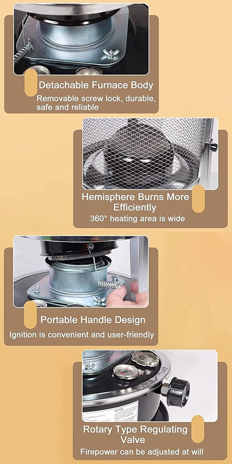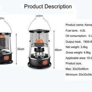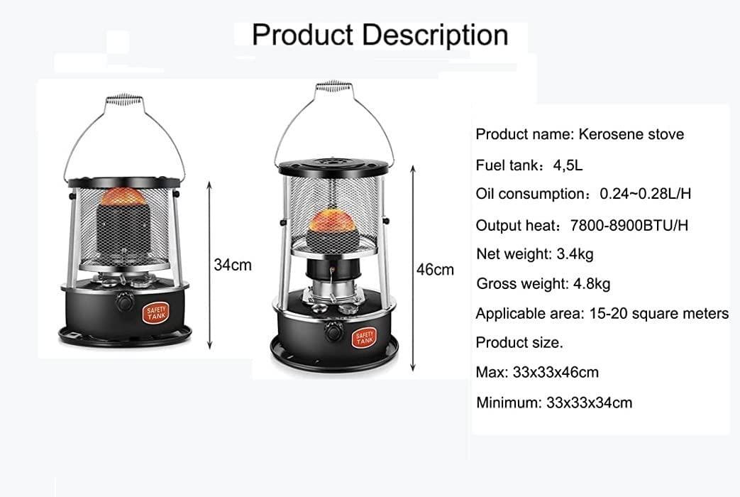 - ?Energy-saving design: Portable kerosene stoves do not require electric heating. Compared to electric heaters, kerosene stoves can quickly heat a room without drying it out. Also very useful during power outages or disasters.
