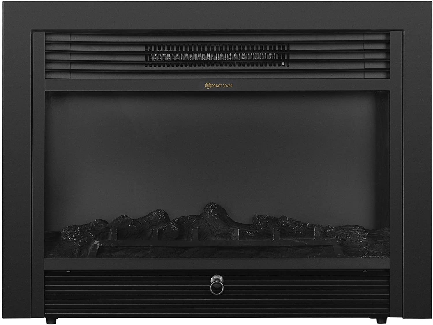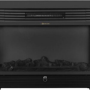 - Realistic Log Set – Amaze your guests with the lifelike flames of this insert electric fireplace. Its realistic flames are set in a pile of faux logs that lends the homey appeal of an authentic fireplace. The log set lie behind durable tempered glass with a contemporary black frame. Enjoy smoke- air while feeling warm during a cold night
