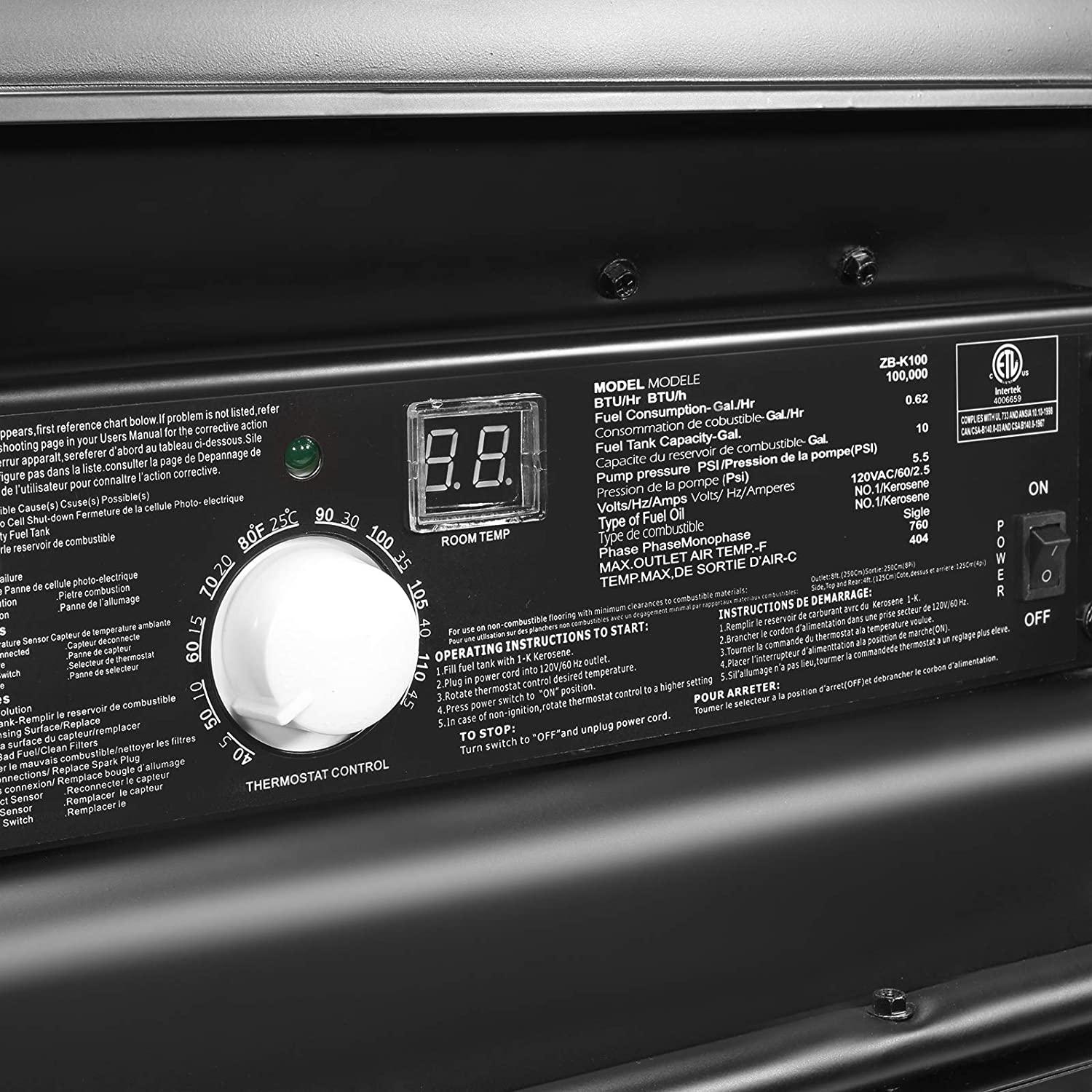 - Kerosene forced air heater has adjustable thermostat of heating output options, and its powerful oxygen supply completely burns the fuel for rapid heating. Due to its excellent heating performance, the heating space can reach 3,000 sq ft