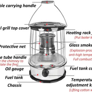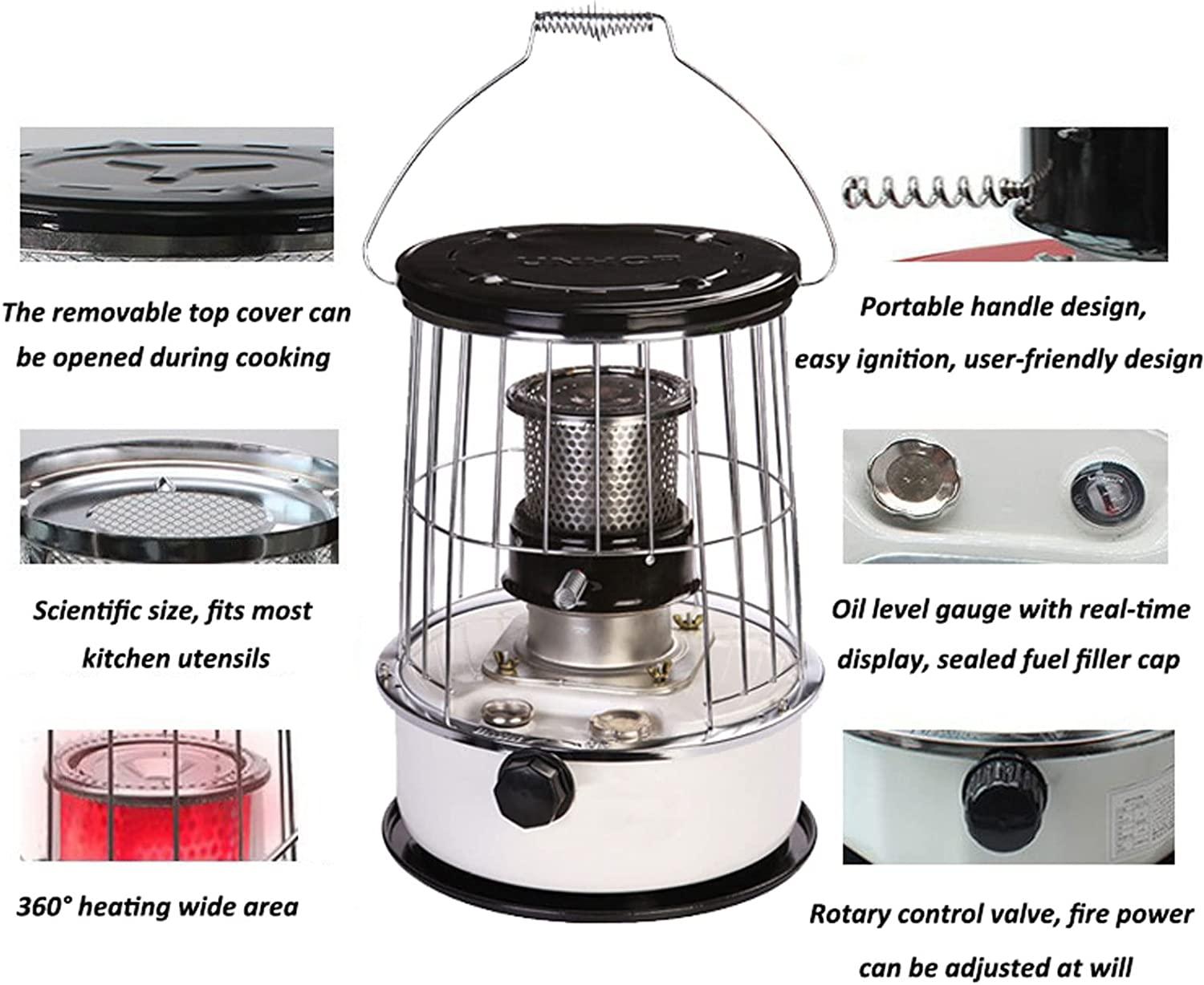 - Multi-purpose: The kerosene stove heater can heat, boil, cook and grill at the same time. It is a good partner for camping, picnic, travel and party. This heater comes with 3 wicks, no need to worry about no replacement